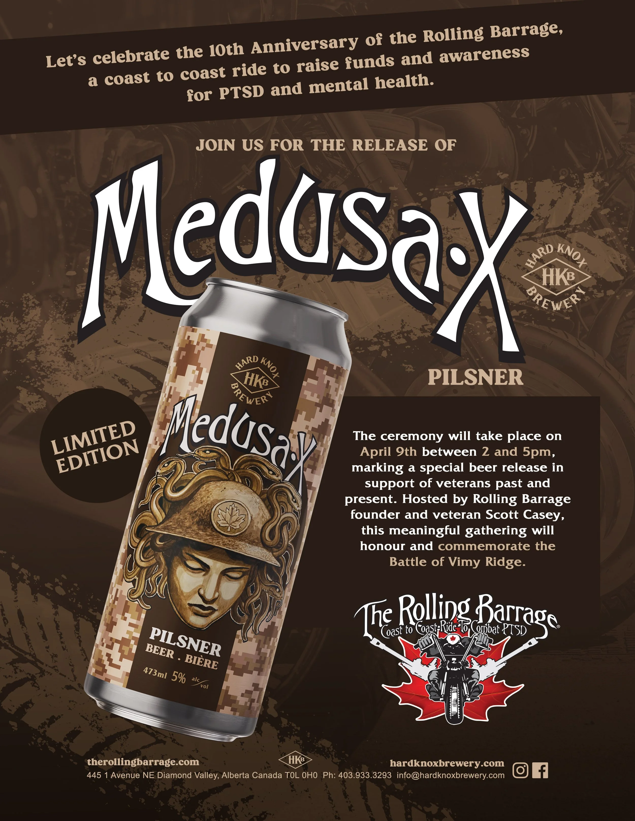 Come on down to the taproom for our official launch of our Limited Edition MedusaX Pilsner in support of the Rolling Barrage Motorcycle ride. We will be holding a tasting and ceremony in memory of Vimy Ridge with words from the founder Scott Casey. www.therollingbarrage.com