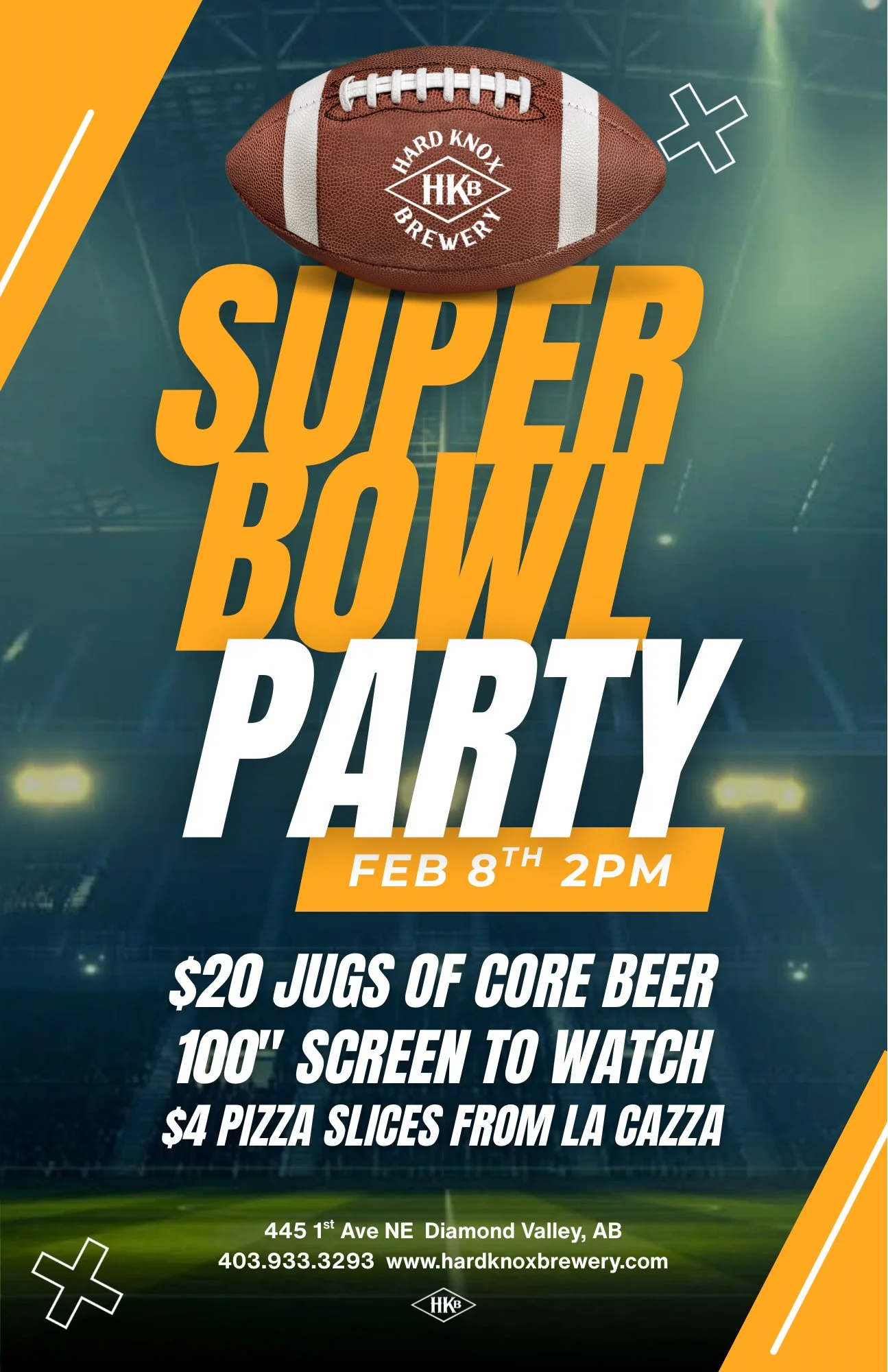 Join us February 8 for Superbowl on the big screen with all the things you would expect at a Superbowl party.