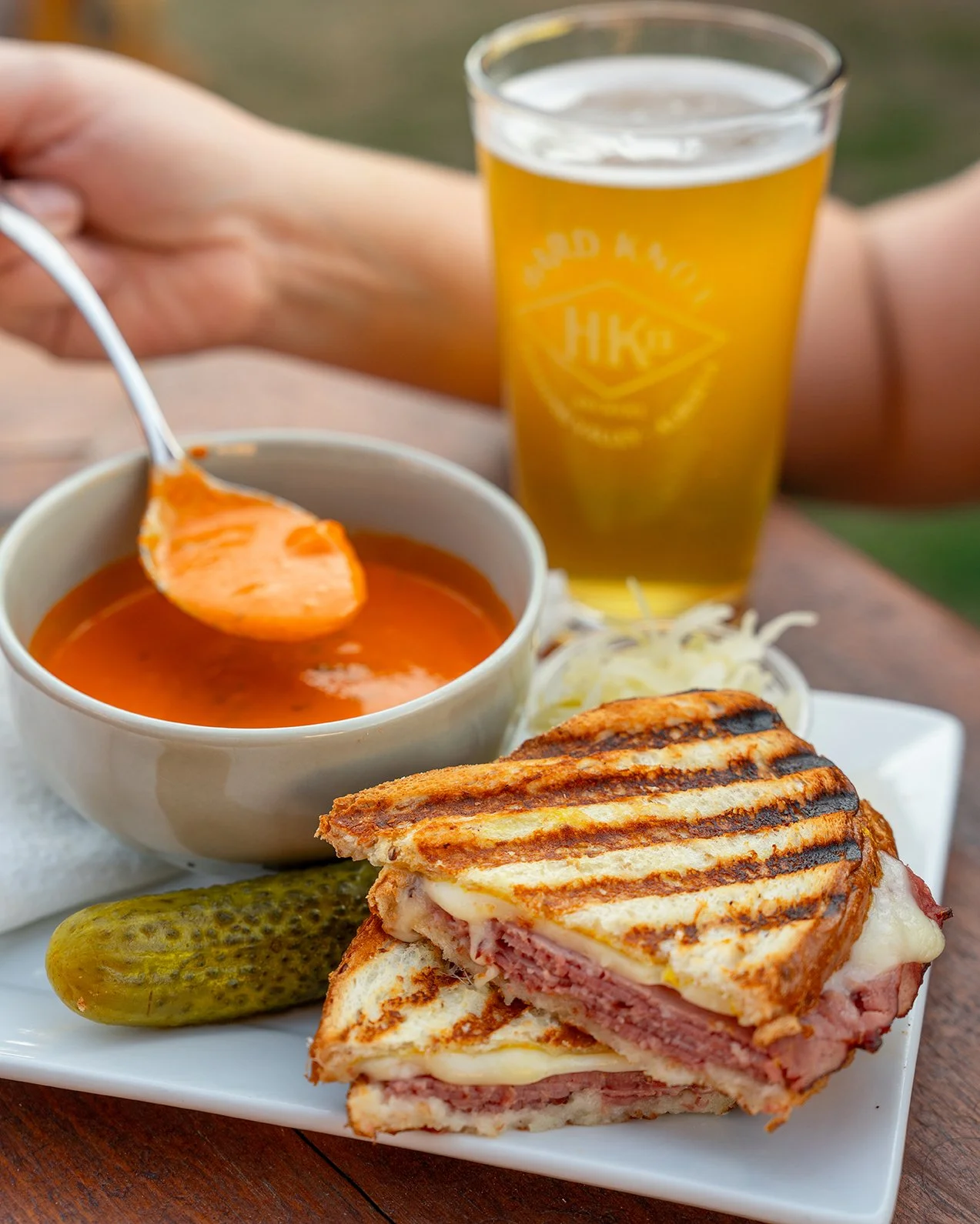 PASTRAMI REUBEN w/ Tomato Basil bisque soup $14.00